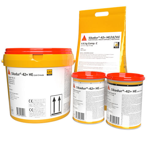 Sikadur®-42+ HE Cold Climate è una malta colabile epossidica tricomponente ad alte prestazioni che tollera l'umidità e sviluppa elevate resistenze anche alle brevi stagionature, per getti di alta precisione. Da utilizzarsi in spessori da 10 a 100 mm a temperature ambientali e del substrato comprese tra +5°C e +30°C.