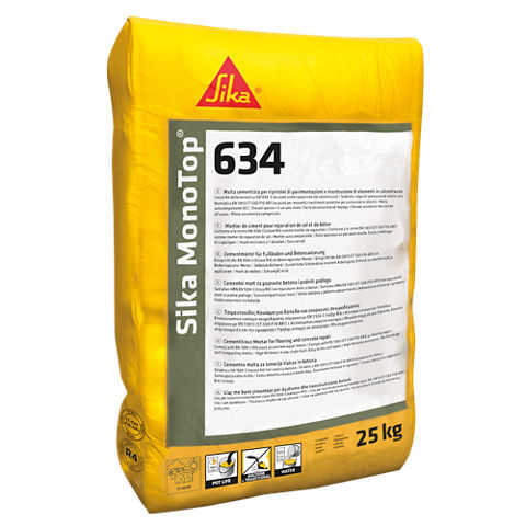 Sika MonoTop®-634 è un prodotto monocomponente premiscelato a base cementizia polimero modificata, di consistenza colabile SCC per la ricostruzione corticale in spessore di pavimentazioni industriali e per la ricostruzione o l’incremento di sezioni di strutture in c.a.