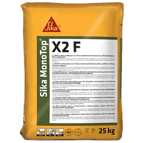 Sika MonoTop® X2 F è una malta monocomponente a presa rapida, premiscelata additivata con polimeri, caratterizzata da ottima reologia e lavorabilità, unite ad un bassissimo ritiro, per il ripristino e la rasatura di elementi in calcestruzzo e per la preparazione di sottofondi e ripristini in facciata, in interno ed esterno, a parete e a pavimento. Contiene cementi modificati con polimeri sintetici, fumi di silice, aggregati selezionati e fibre sintetiche.